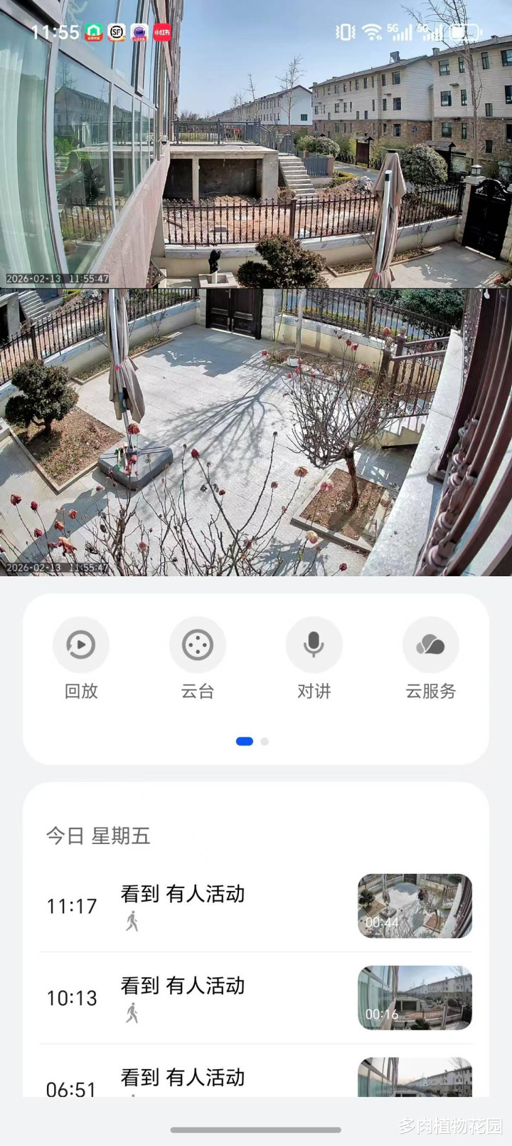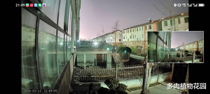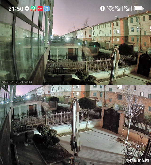 我特意做了下测试,晚上的时候打开监控,肉眼看漆黑一片,连隔壁邻居家的栅栏都分不清,结果鲸瞳 MAX 的画面居然亮得像白天!小院的花花草草都能看的清清楚楚。