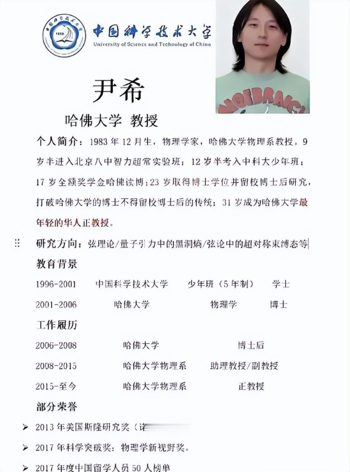 而这位已经在美国哈佛大学获得正教授职称的尹希。